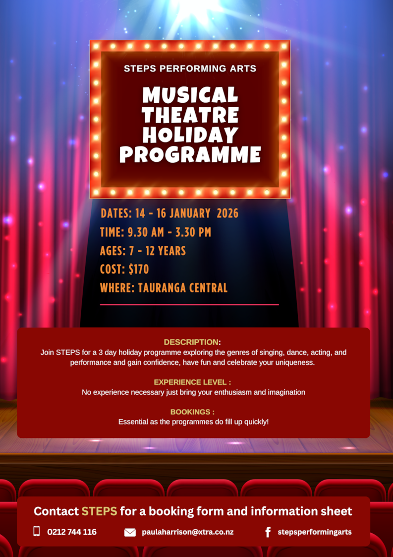 Whether your tamaiti has dreams of the stage or just want to try something new, these lessons will: • Build musical foundations in rhythm, pitch, and performance • Encourage teamwork and listening skills • Boost self-esteem and resilience through performance • Give students opportunities to showcase their talents at school events You may even spot me gigging around Tauranga. I'm excited to add another creative outlet for kids at Arataki School. Wheriko  |