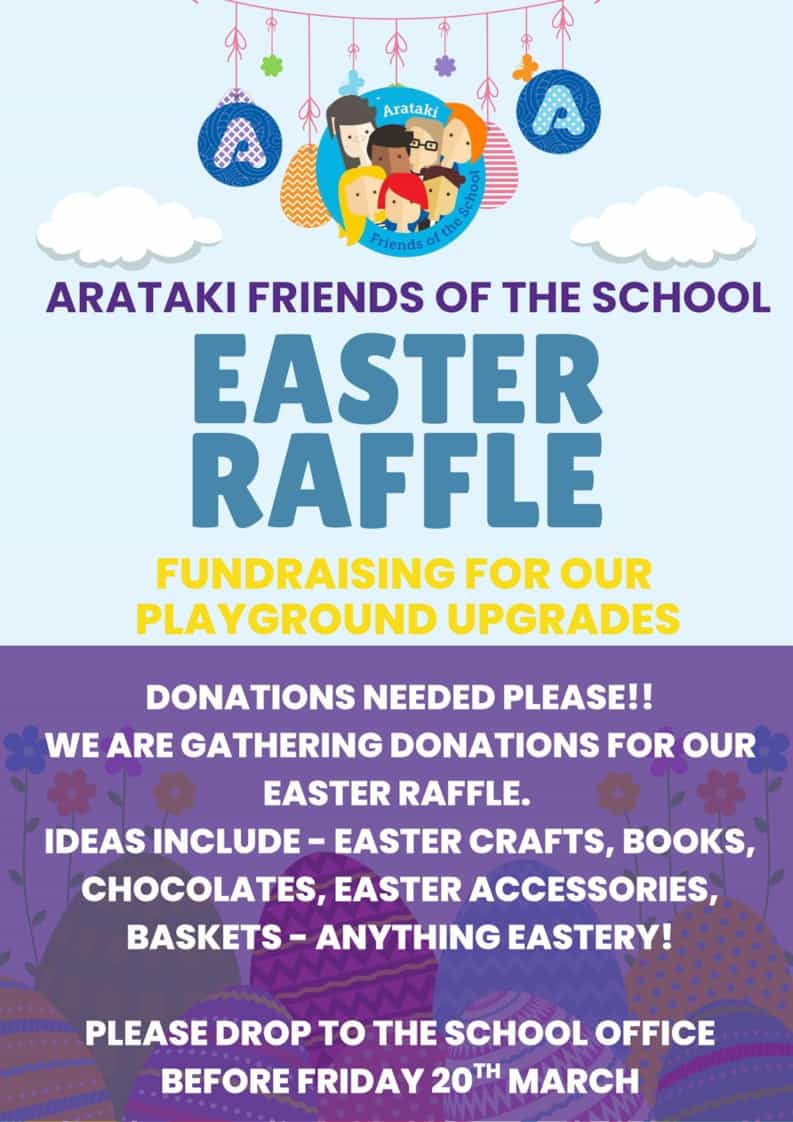 The Arataki Friends of School are hopping into action to organise our annual Easter Raffle, and we need your help to make it a "cracking" success!